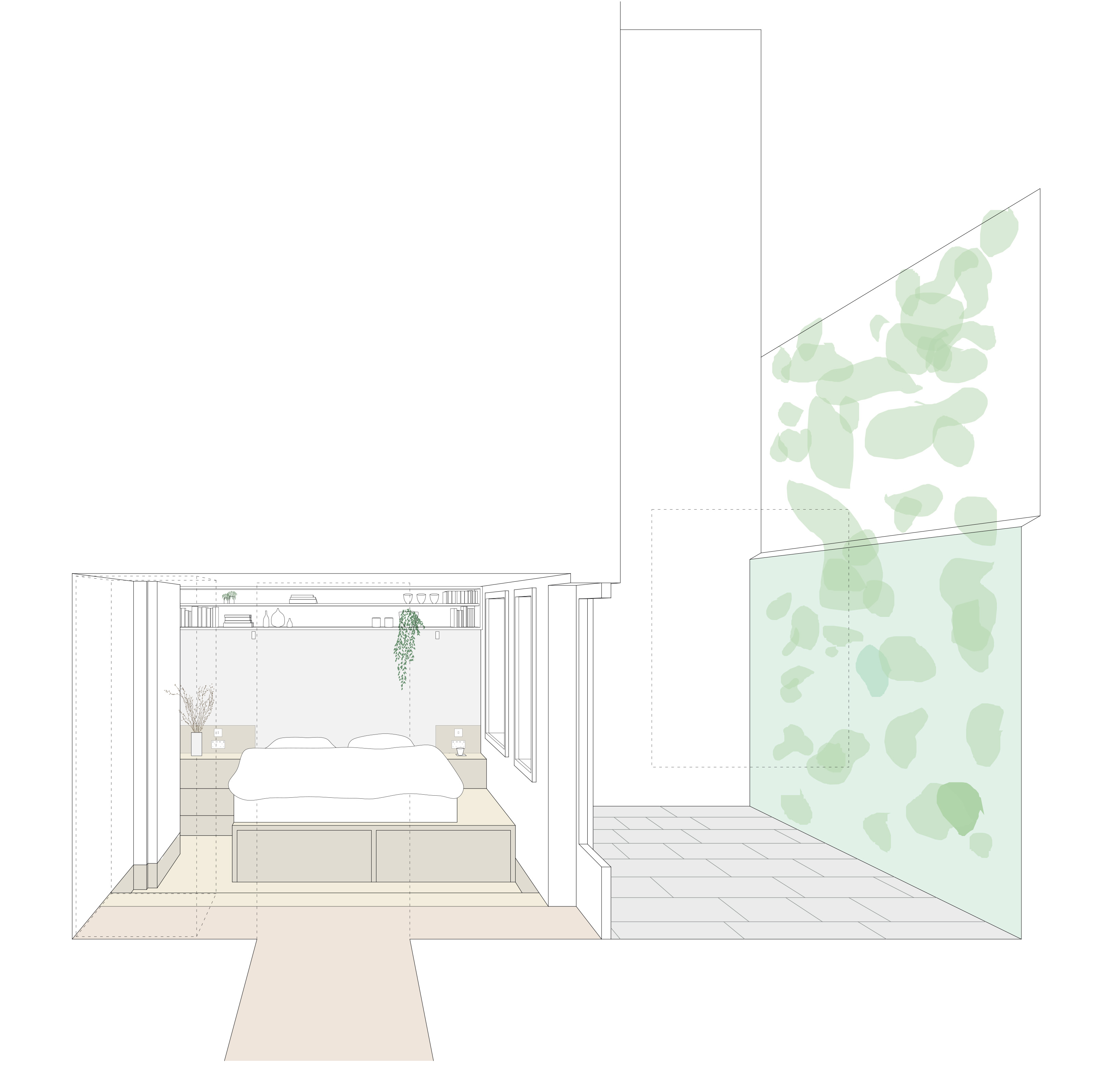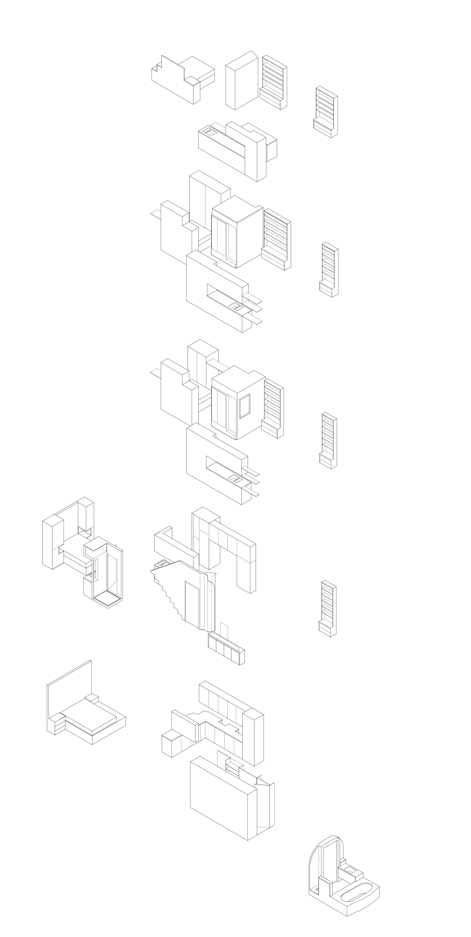 principle of the wet rooms and other inbuilt furniture pieces throughout the